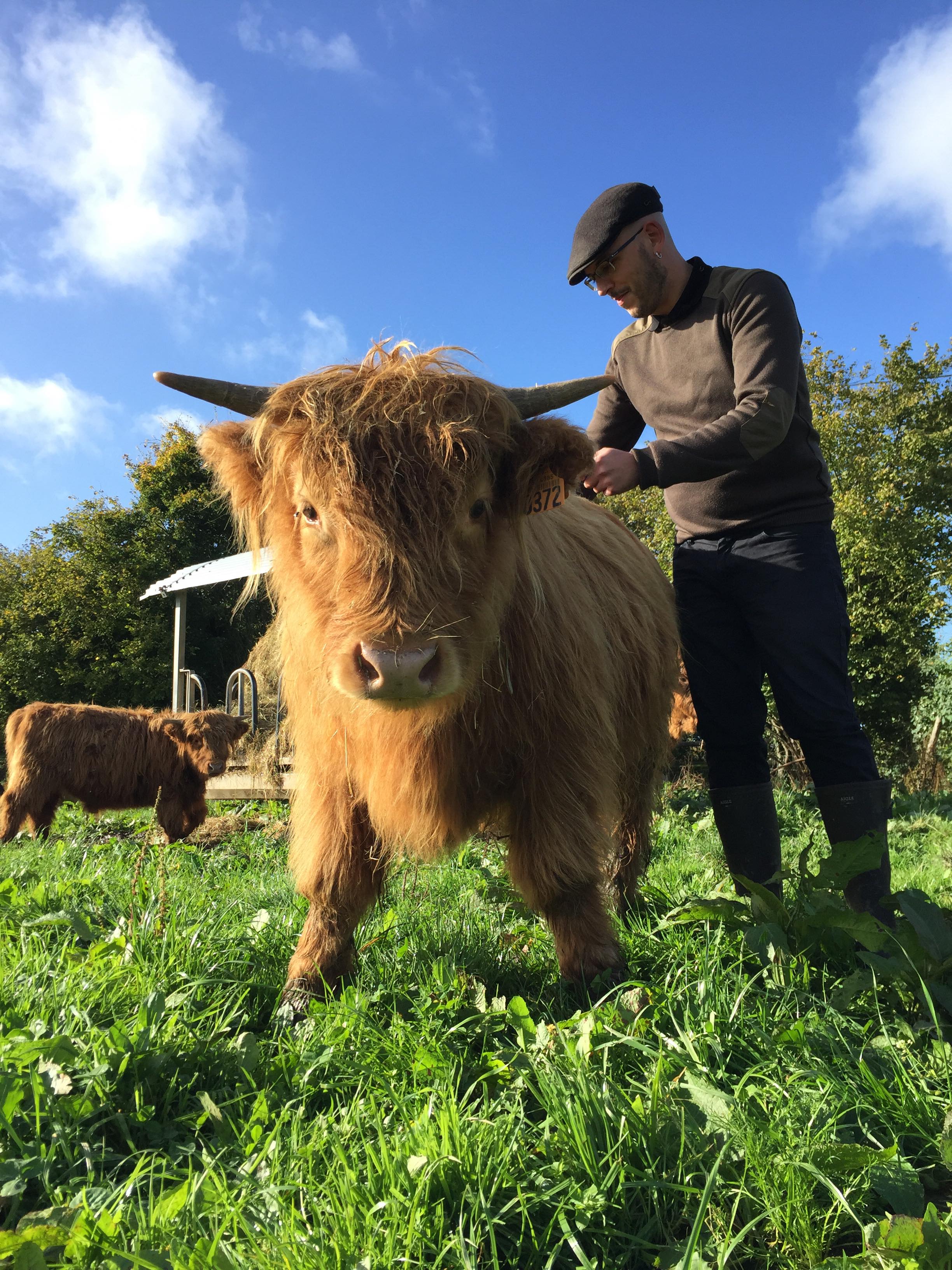 Je suis éleveur de vaches Highlands en Bretagne et j'ai décidé de diversifier mon activité en créant ma propre marque de vêtements inspirée de mes vaches.